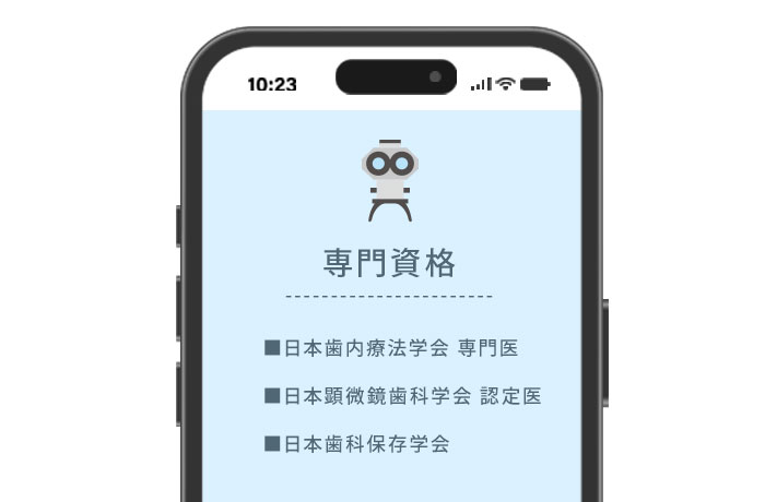根管治療に関連する専門資格や経歴は、専門性を証明する客観的な指標です。
