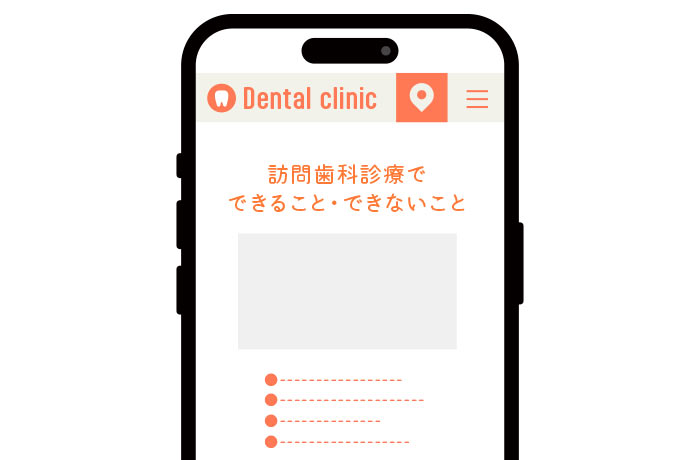また、施設側には「複数の入居者をまとめて診てほしい」「定期的に訪問してほしい」「スタッフへの口腔ケア指導もしてほしい」といったニーズがあります。これらに対応できることをホームページで明示します。
