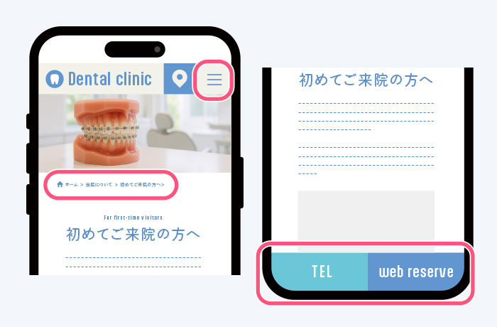 ナビゲーションとは、サイト内を移動するためのメニューやリンクのことです。分かりやすいナビゲーションは、患者の満足度を大きく向上させます。